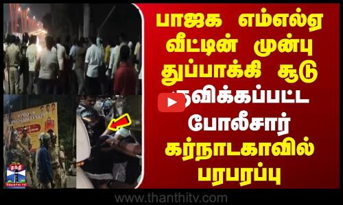 Karnataka Gun Shot | பாஜக எம்எல்ஏ வீட்டின் முன்பு துப்பாக்கி சூடு | குவிக்கப்பட்ட போலீசார் | கர்நாடகாவில் பரபரப்பு
