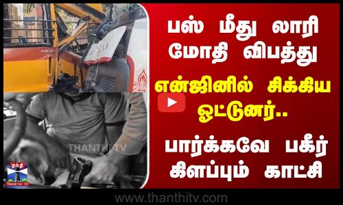 Kerala | பஸ் மீது லாரி மோதி விபத்து - என்ஜினில் சிக்கிய ஓட்டுனர்.. பார்க்கவே பகீர் கிளப்பும் காட்சி