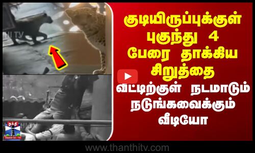 Leopard | குடியிருப்புக்குள் புகுந்து 4 பேரை தாக்கிய சிறுத்தை.. வீட்டிற்குள் நடமாடும் வீடியோ