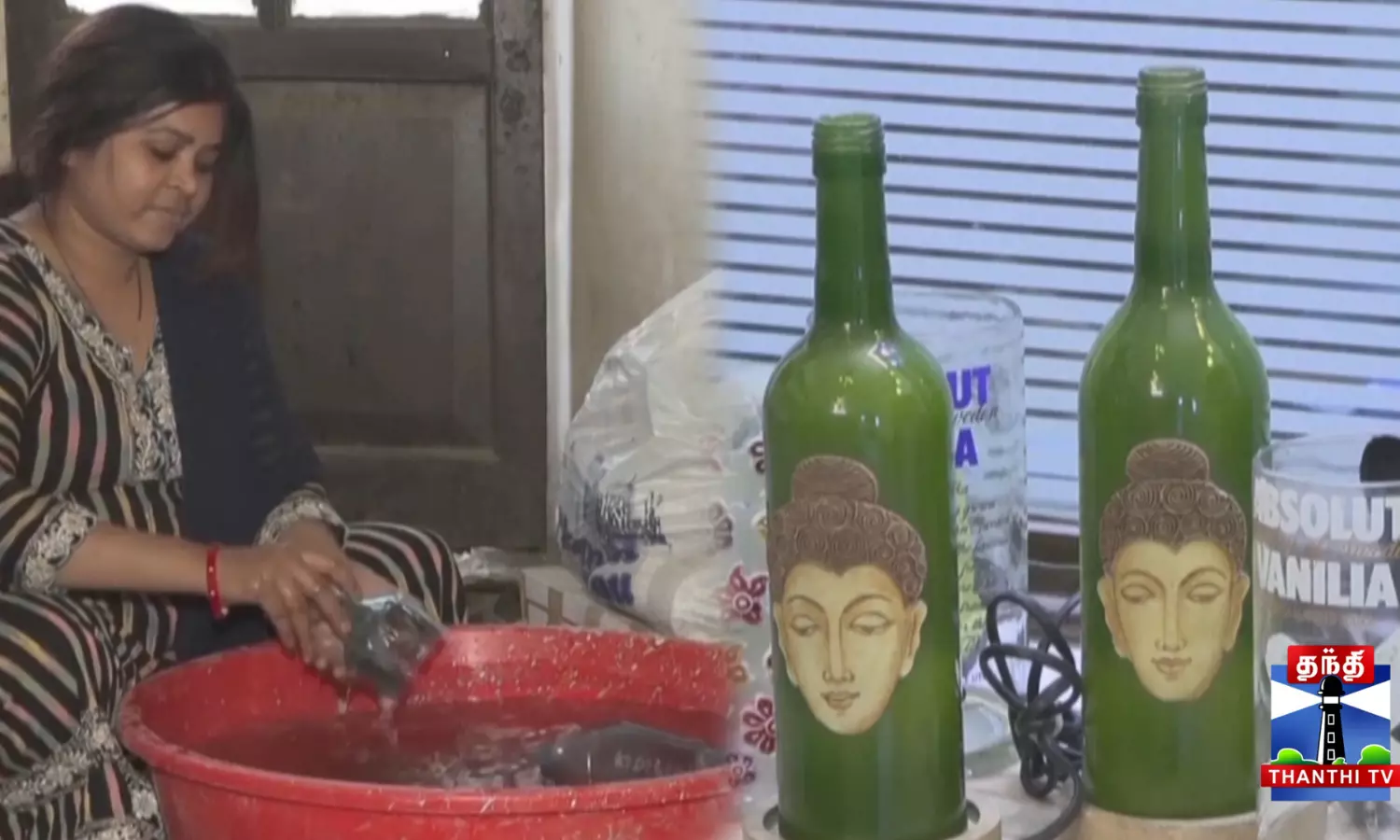 வீதிகள்ல கிடக்குற பாட்டில்கள சேகரிச்சு...நல்லா சுத்தப்படுத்தி...அதோட பிராண்ட், அப்றம் கலரின் அடிப்படைல வரிசைப்படுத்தி...வெட்டி...மெருகூட்டி...நேர்த்தியான ஜாடிகள், விளக்குகளா மாத்தப்படுது