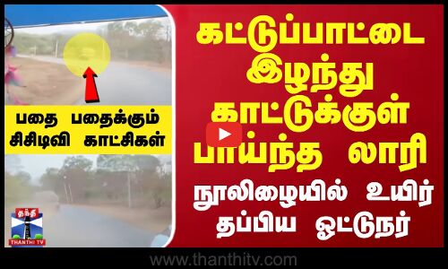 கட்டுப்பாட்டை இழந்து காட்டுக்குள் பாய்ந்த லாரி.. பதை பதைக்கும் சிசிடிவி காட்சிகள்