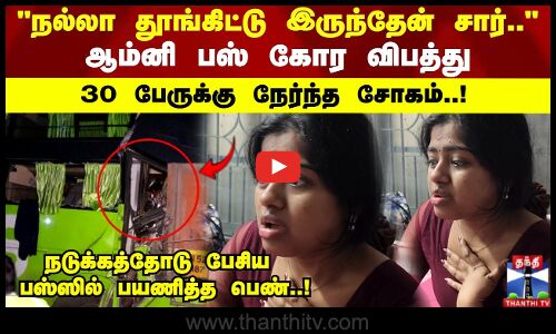 "நல்லா தூங்கிட்டு இருந்தேன் சார்.." ஆம்னி பஸ் கோர விபத்து 30 பேருக்கு நேர்ந்த சோகம்..! நடுக்கத்தோடு பேசிய பஸ்ஸில் பயணித்த பெண்..!