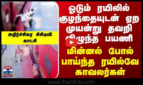 உத்தரபிரதேச மாநிலம் பிரயாக்ராஜ் ரயில் நிலையத்தில் ஓடும் ரயிலில் குழந்தையுடன் ஏற முயன்று தவறி விழுந்த பயணி, ரயில்வே காவலர்களின் துரித நடவடிக்கையால் அதிர்ஷ்டவசமாக உயிர் தப்பியுள்ளார்...
