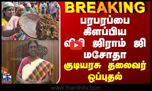 விபி ஜி ராம் ஜி மசோதாவிற்கு குடியரசு தலைவர் திரெளபதி முர்மு ஒப்புதல்/ஊரக வேலை திட்டத்தில் மாற்றங்களுடன் கொண்டுவரப்பட்ட விபி ஜி ராம் ஜி மசோதாவிற்கு குடியரசு தலைவர் திரெளபதி முர்மு ஒப்புதல்/விபி ஜி ராம் ஜி திட்டத்தின் மூலம் பணி நாட்களின் எண்ணிக்கை 100லிருந்து 125 ஆக உயர்ந்துள்ளது/விபி ஜி ராம் ஜி திட்டம் பவளமான, தன்னம்பிக்கை கொண்ட கிராமப்புறத்திற்கான அடித்தளம் - மத்திய அரசு/புதிய சட்டப்படி 60% சம்பளத்தை மத்திய அரசும், 40% சம்பளத்தை மாநில அரசு ஏற்றுகொள்ள வேண்டும்