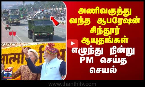 Republicday | PM Modi | அணிவகுத்து வந்த ஆபரேஷன் சிந்தூர் ஆயுதங்கள்.. எழுந்து நின்று PM செய்த செயல்