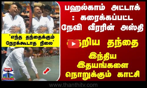 ஹரியானாவை சேர்ந்த வினய் நர்வாலுக்கு கடந்த வாரம் திருமணம் நடைபெற்ற நிலையில், தேனிலவுக்காக பஹல்காம் சென்ற போது அவர் கொல்லப்பட்டார். இறுதிச்சடங்குகளுக்கு பின்னர் வினய் நர்வாலின் அஸ்தியை ஹரிதுவாரில் உள்ள கங்கை நதிக்கரையில் அவரது தந்தை கரைத்தார். அப்போது அவர் கண்ணீர் விட்டு கதறியது நெஞ்சை உலுக்கியது.