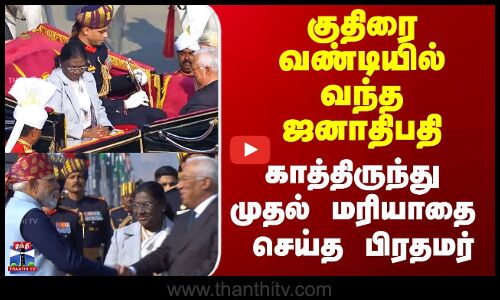Republic Day Celebration | குதிரை வண்டியில் வந்த ஜனாதிபதி - காத்திருந்து முதல் மரியாதை செய்த பிரதமர்