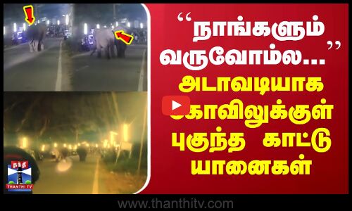 நாங்களும் திருவிழா கொண்டாடுவோம் - கோயிலுக்குள் புகுந்த காட்டு யானைகள்