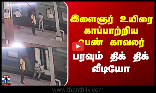 கேரள மாநிலம் எர்ணாகுளத்தில், ஓடும் ரயிலில் ஏற முயன்று கீழே தவறி விழுந்த இளைஞரை ரயில்வே பெண் காவலர் துரிதமாக செயல்பட்டு காப்பாற்றினார்.