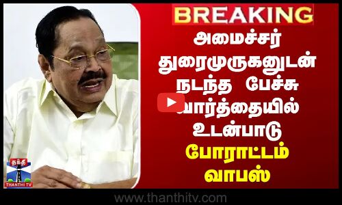 BREAKING | Duraimurugan அமைச்சர் துரைமுருகனுடன் நடந்த பேச்சுவார்த்தையில் உடன்பாடு - போராட்டம் வாபஸ்