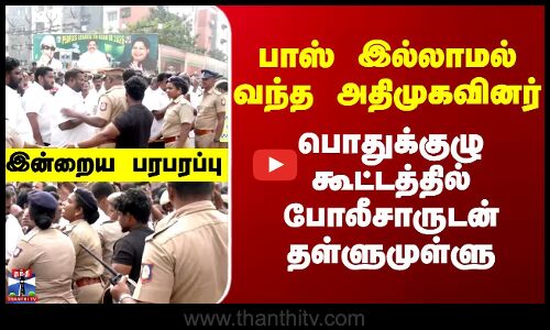 பாஸ் இல்லாமல் வந்த அதிமுகவினர் - பொதுக்குழு கூட்டத்தில் போலீசாருடன் தள்ளுமுள்ளு