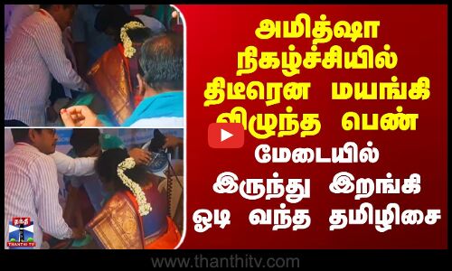Tamilisai|அமித்ஷா நிகழ்ச்சியில் திடீரென மயங்கி விழுந்த பெண்-மேடையில் இருந்து ஓடி வந்து உதவிய தமிழிசை