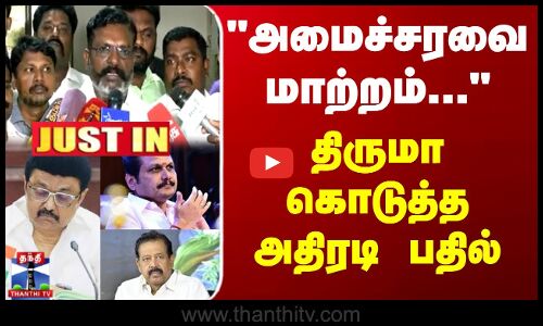#JUSTIN || ``மக்கள் எதிர்பார்ப்பிற்கேற்ப அமைச்சரவை மாற்றம்...''திருமா கூறிய அதிரடி பதில்