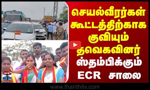 Chennai | TVK | ECR Road | செயல்வீரர்கள் கூட்டத்திற்காக குவியும் தவெகவினர் ஸ்தம்பிக்கும் ECR சாலை