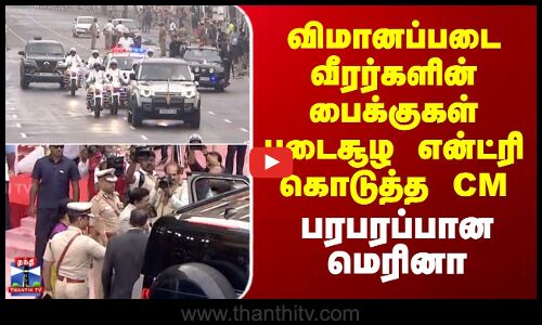 Republicday | வீரர்களின் மோட்டார் சைக்கிள்கள் புடைசூழ என்ட்ரி கொடுத்த CM - பரபரப்பான மெரினா