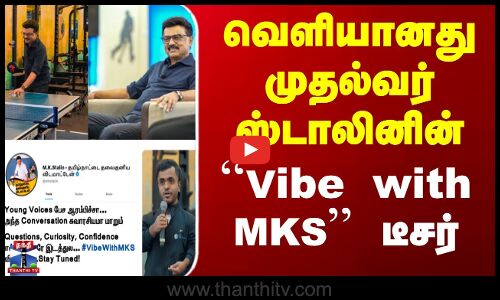 முதலமைச்சர் ஸ்டாலின் இளைஞர்களுடன் கலந்துரையாடும் டிஜிட்டல் தொடரான 'வைப் வித் எம்.கே.எஸ்'-இன் (Vibe with MKS) டீசர் வெளியாகியுள்ளது. இதையொட்டி, இளம் விளையாட்டு வீரர்களுடன் தாம் உரையாடிய புரோமோ (Promo) வீடியோவை, சமூக வலைதளத்தில் வெளியிட்டுள்ளார். இளம் தலைமுறையினர் பேச ஆரம்பித்தால், அந்த உரையாடல் சுவாரசியமாக மாறும் என்றும் முதலமைச்சர் ஸ்டாலின் பதிவிட்டுள்ளார்.