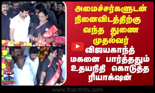 Udhayanidhistalin | Premalatha Vijayakanth | அமைச்சர்களுடன் நினைவிடத்திற்கு வந்த துணை முதல்வர்
