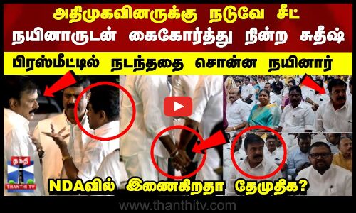 DMDK alliance | NDA | ADMK | அதிமுகவினருக்கு நடுவே சீட்..நயினாருடன் கைகோர்த்து நின்ற தேமுதிக சுதீஷ்