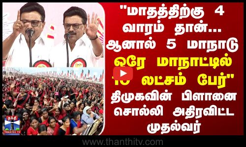 DMK "மாதத்திற்கு 4 வாரம் தான் ஆனால் 5 மாநாடு - ஒரே மாநாட்டில் 10 லட்சம் பேர்..." -அதிரவிட்ட முதல்வர்