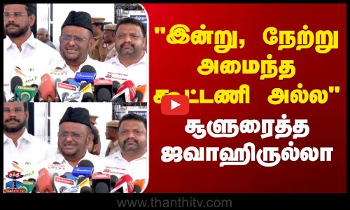 சென்னை சட்டமன்ற வளாகத்தில் செய்தியாளர்களை சந்தித்த மனிதநேய மக்கள் கட்சியின் தலைவரும் சட்டமன்ற உறுப்பினருமான ஜவாஹிருல்லா, திமுக கூட்டணி இன்று, நேற்று அமைந்த கூட்டணி அல்ல.." என்று தெரிவித்தார்.