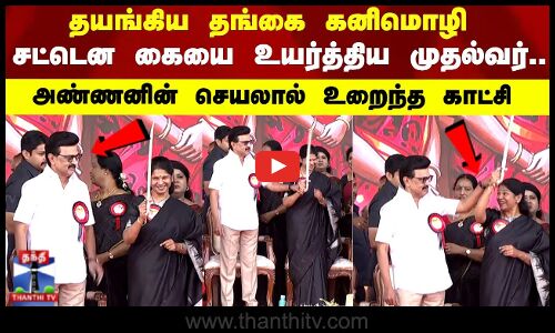 DMK | தயங்கிய தங்கை கனிமொழி சட்டென உயர்த்தி காட்டிய முதல்வர்.. அண்ணனின் செயலால் உறைந்த காட்சி