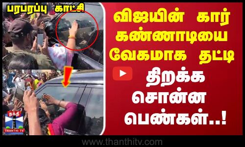 Erode Vijay | விஜயின் கார் கண்ணாடியை வேகமாக தட்டி திறக்க சொன்ன பெண்கள்..! பரபரப்பு காட்சி