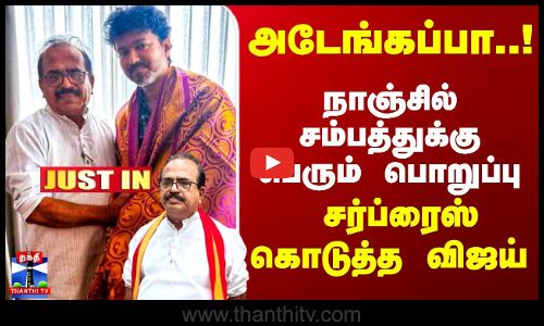 தவெக பரப்புரை செயலாளராக நாஞ்சில் சம்பத் நியமனம்/நேற்று தவெக தலைவர் விஜய் முன்னிலையில் அக்கட்சியில் இணைந்த நாஞ்சில் சம்பத்/நாஞ்சில் சம்பத்திற்கு தவெக பரப்புரை செயலாளராக பொறுப்பு - விஜய் அறிவிப்பு/தவெக பொதுச்செயலாளர் என்.ஆனந்துடன் இணைந்து நாஞ்சில் சம்பத் செயல்படுவார் என விஜய் அறிவிப்பு/நாஞ்சில் சம்பத்தை தவெகவிற்கு வரவேற்பதாக விஜய் அறிக்கை
