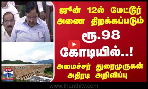 ஜூன் 12ல் மேட்டூர் அணை திறக்கப்படும் | ரூ.98 கோடியில்! | அமைச்சர் துரைமுருகன் அதிரடி அறிவிப்பு |
