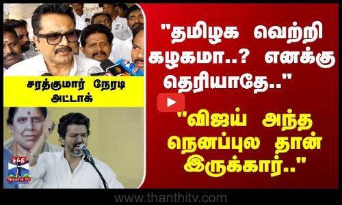 நெல்லையில் சினிமா விழாவில் பங்கேற்ற நடிகரும், பாஜக நிர்வாகியுமான சரத்குமார், "தமிழக வெற்றிக் கழகம் என்றால் தனக்கு தெரியவில்லை" என்று செய்தியாளர்களிடம் கிண்டலாக தெரிவித்தார்..