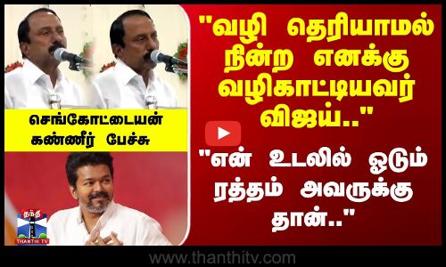 திருப்பூர் மாவட்டம் காங்கேயத்தில் நடந்த தவெக ஆலோசனை கூட்டத்தில் பங்கேற்ற செங்கோட்டையன், "வழிதெரியாமல் நின்ற போது.. விஜய் தனக்கு வழிகாட்டியதாக.." கண்ணீர் மல்க தெரிவித்தார்..