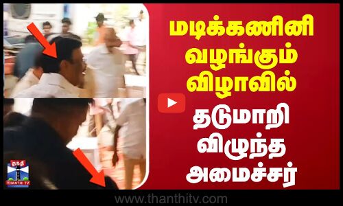 பொன்னேரியில் மடிக்கணினிகள் வழங்கும் விழாவில் அமைச்சர் நாசர் கீழே விழுந்ததால் சில விநாடிகள் பரபரப்பு நிலவியது.