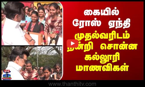 லேப்டாப் வழங்கும் திட்டத்தை தொடங்கி வைத்த முதலமைச்சருக்கு நன்றி தெரிவித்த மாணவிகள்