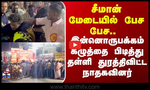 NTK Seeman Speech | சீமான் மேடையில் பேச பேச.. கழுத்தை பிடித்து தள்ளி துரத்திவிட்ட நாதகவினர்