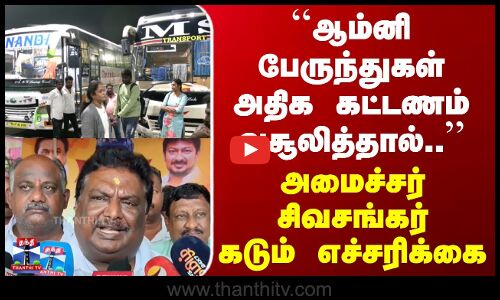 அதிக கட்டணம் வசூலிக்கும் ஆம்னி பேருந்துகள் பறிமுதல் செய்யப்படும் என போக்குவரத்து துறை அமைச்சர் சிவசங்கர் எச்சரிக்கை விடுத்துள்ளார். அரியலூர் மாவட்டம் ஜெயங்கொண்டத்தில் அமைச்சர் சிவசங்கர் செய்தியாளர்களை சந்தித்தார் அந்த காட்சிகளை பார்க்கலாம்...