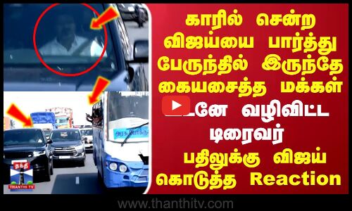 காரில் சென்ற விஜய்யை பார்த்து பேருந்தில் இருந்தே கையசைத்த மக்கள்