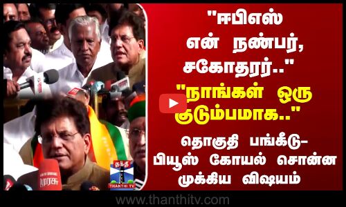 சென்னை எம்ஆர்சி நகரில் நடைபெற்ற தொகுதி பங்கீடு பேச்சுவார்த்தைக்கு பின் அதிமுக பொதுச்செயலாளர் ஈபிஎஸ் மற்றும் தமிழக பாஜக தேர்தல் பொறுப்பாளரான மத்திய அமைச்சர் பியூஷ் கோயல் செய்தியாளர்களை சந்தித்து வருகின்றனர்... அதனை காணலாம்...