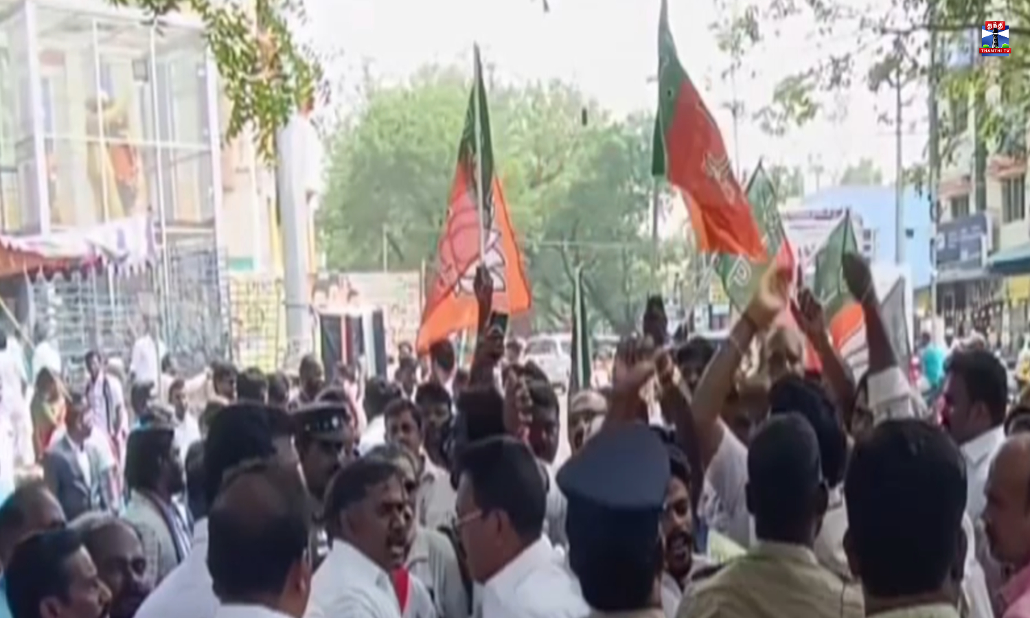 தமிழக மக்கள் ஜனநாயக கட்சி தொண்டர்களுக்கும் பாஜக தொண்டர்களுக்கும் அம்பேத்கர் சிலைக்கு மாலை அணிவிக்க அந்த பொழுது மோதல் ஏற்படும் சூழ்நிலை இரு கட்சியினரையும் சாமர்த்தியமாக விளக்கி விட்ட காவல்துறையினர்.
