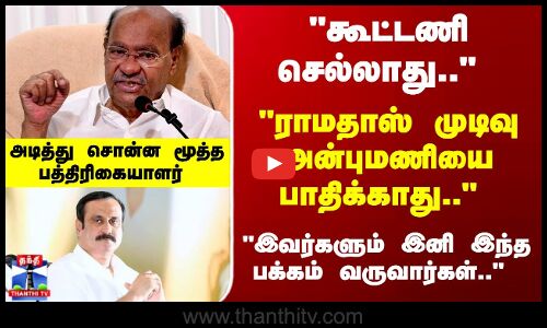 அதிமுக, அன்புமணி கூட்டணி செல்லாது - ராமதாஸ்/"பாமகவுடன் தேர்தல் கூட்டணி என்று அன்புமணியுடனோ, வேறு எவரிடமோ எந்த அரசியல் கட்சியும் பேச்சுவார்த்தை நடத்த இயலாது"/பொதுக்குழுவின்படி எனக்கு மட்டுமே கூட்டணி பேச அதிகாரம் உள்ளது - ராமதாஸ்/அதிமுக, அன்புமணி கூட்டணி பேச்சுவார்த்தை நீதிமன்றத்தை அவமதிக்கும் செயல் - ராமதாஸ்/கட்சி விதிப்படி எனக்கு மட்டுமே யாருடனும் கூட்டணி பேச உரிமை உள்ளது - ராமதாஸ்/ஈபிஎஸ்-அன்புமணி இன்று சந்தித்து கூட்டணியை உறுதி செய்த நிலையில் ராமதாஸ் பரபரப்பு அறிக்கை/பாமக சார்பாக அன்புமணி தேர்தல் கூட்டணி பேசியது, நீதிமன்றத்தை அவமதிக்கும் செயல் - ராமதாஸ்