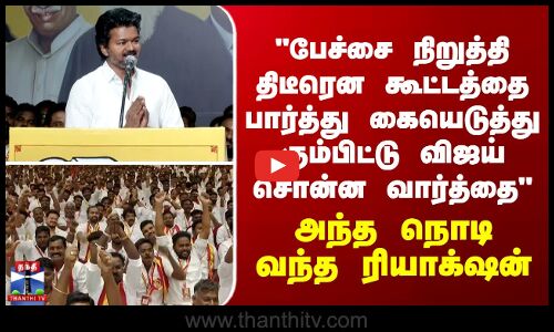பேசும் போதே திடீரென கூட்டத்தை பார்த்து கையெடுத்து கும்பிட்டு விஜய் சொன்ன வார்த்தை - அந்த நொடி வந்த ரியாக்ஷன்