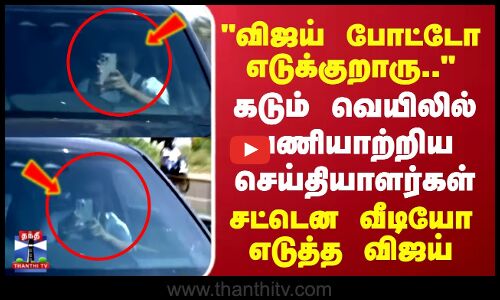 TVK VIjay Takes Photo | Erode | கடும் வெயிலில் பணியாற்றிய செய்தியாளர்கள்..சட்டென வீடியோ எடுத்த விஜய்