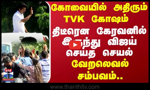 கோவையில் அதிரும் TVK கோஷம்..! திடீரென கேரவனில் இருந்து விஜய் செய்த செயல்.. வேறலெவல் சம்பவம்