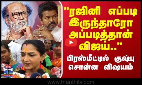 TVK Vijay | BJP | "ரஜினி எப்படி இருந்தாரோ அப்படித்தான் விஜய்" பிரஸ்மீட்டில் குஷ்பு சொன்ன விஷயம்