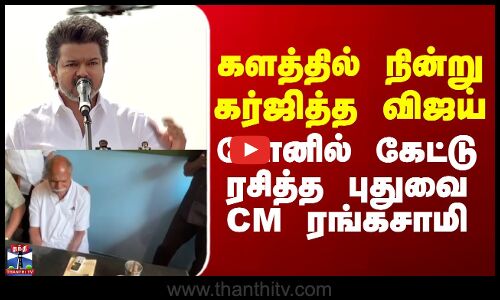 Tvk Vijay| Puducherry CM | களத்தில் நின்று கர்ஜித்த விஜய்.. போனில் கேட்டு ரசித்த புதுவை CM ரங்கசாமி