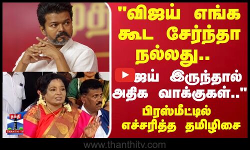 TVK Vijay | Tamilisai | BJP | "விஜய் எங்க கூட சேர்ந்தா நல்லது.."பிரஸ்மீட்டில் எச்சரித்த தமிழிசை