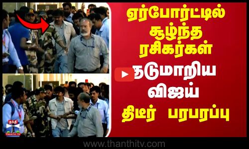 ஏர்போர்ட்டில் சூழ்ந்த ரசிகர்கள் தடுமாறிய விஜய் திடீர் பரபரப்பு