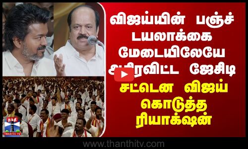 Vijay விஜய்யின் பஞ்ச் டயலாக்கை மேடையிலேயே அதிரவிட்ட ஜேசிடி...சட்டென விஜய் கொடுத்த ரியாக்ஷன்