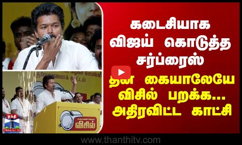 Vijay Speech கடைசியாக விஜய் கொடுத்த சர்ப்ரைஸ்... தன் கையாலேயே விசில் பறக்க... அதிரவிட்ட காட்சி