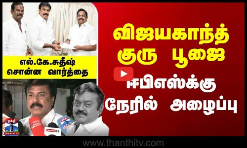மறைந்த தேமுதிக தலைவர் விஜயகாந்தின் இரண்டாம் ஆண்டு குருபூஜையில் கலந்து கொள்ள அதிமுக பொதுச்செயலாளர் எடப்பாடி பழனிசாமிக்கு அழைப்பிதழ் வழங்கப்பட்டுள்ளது. இதனை தேமுதிக பொருளாளர் எல்.கே.சுதீஷ் நேரில் சென்று கொடுத்தார். இதனையடுத்து செய்தியாளர்களிடம் பேசிய எல்.கே.சுதீஷ், அரசியல் சார்ந்து எதையும் பேசவில்லை என்றும் தெரிவித்துக்கொண்டார்.