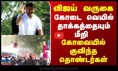 விஜய் வருகை | கோடை வெயில் தாக்கத்தையும் மீறி கோவையில் குவிந்த தொண்டர்கள்