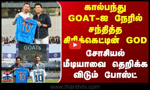 மும்பை வான்கடே மைதானத்தில் மெஸ்ஸியுடன் சச்சின் சந்தித்த புகைப்பட பதிவு இணையத்தில் வைரலாகி வருகிறது. ஜாம்பவான் லியோனல் மெஸ்ஸிக்கு கிரிக்கெட் சாம்பவான் சச்சின் தன்னுடைய 10 எண் பொறிக்கப்பட்ட 2011 ஆம் ஆண்டு உலககோப்பை ஜெர்சியை பரிசாக வழங்கினார். அதனை தொடர்ந்து சச்சின் தனது எக்ஸ் தளத்தில் தனது 10/10 என பதிவிட்டு மெஸ்ஸியுடனான புகைப்படத்தை பகிர்ந்துள்ளார்.